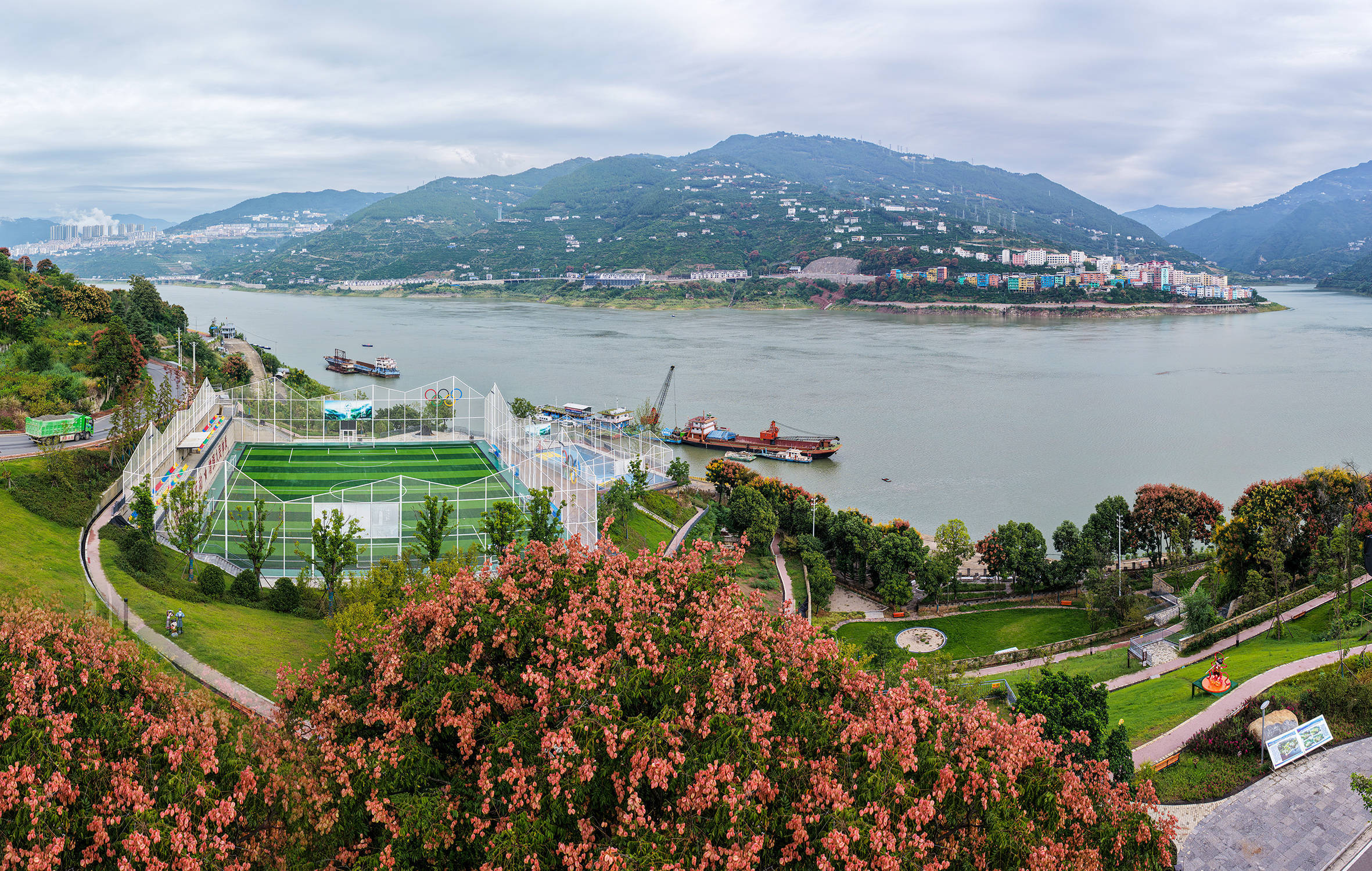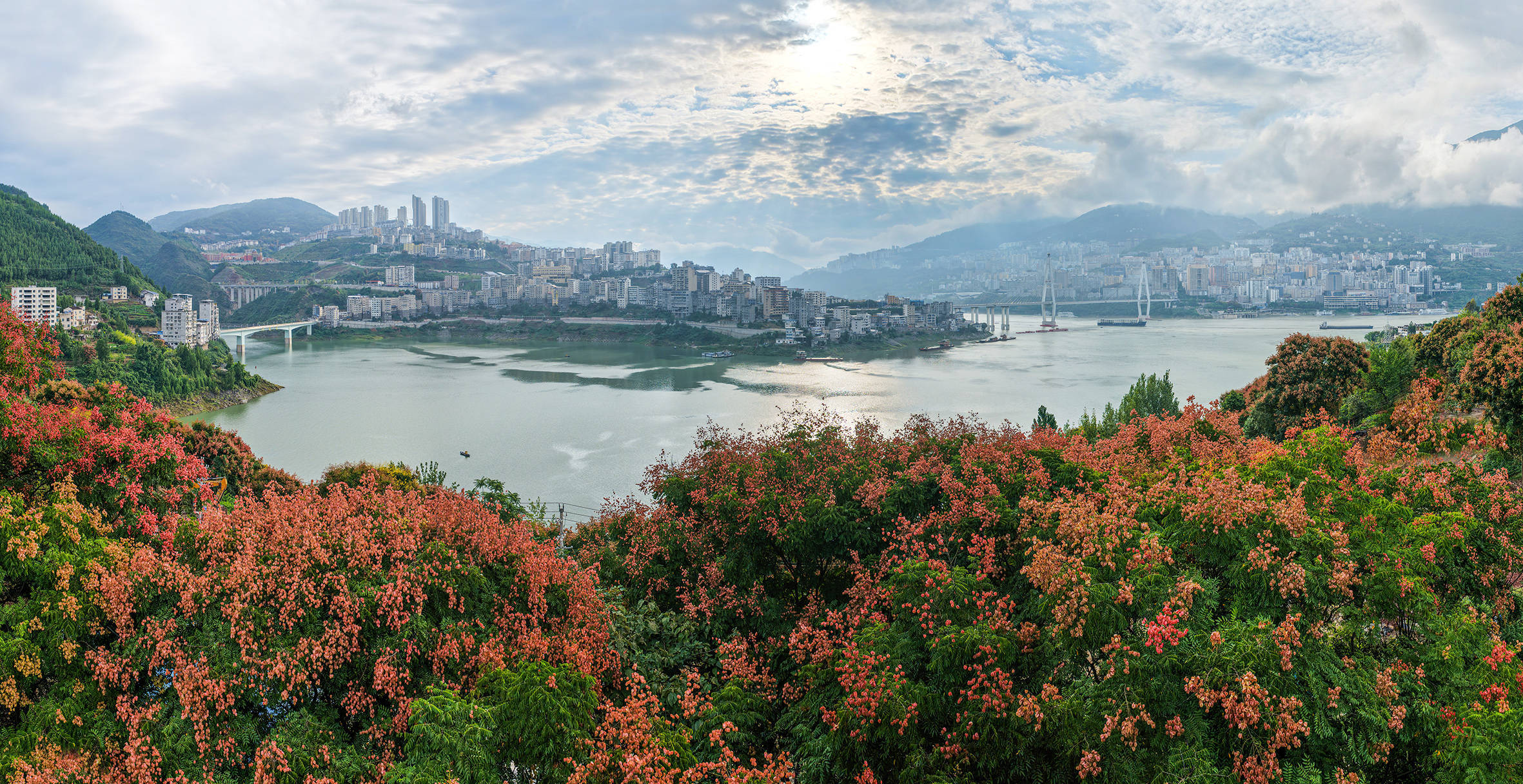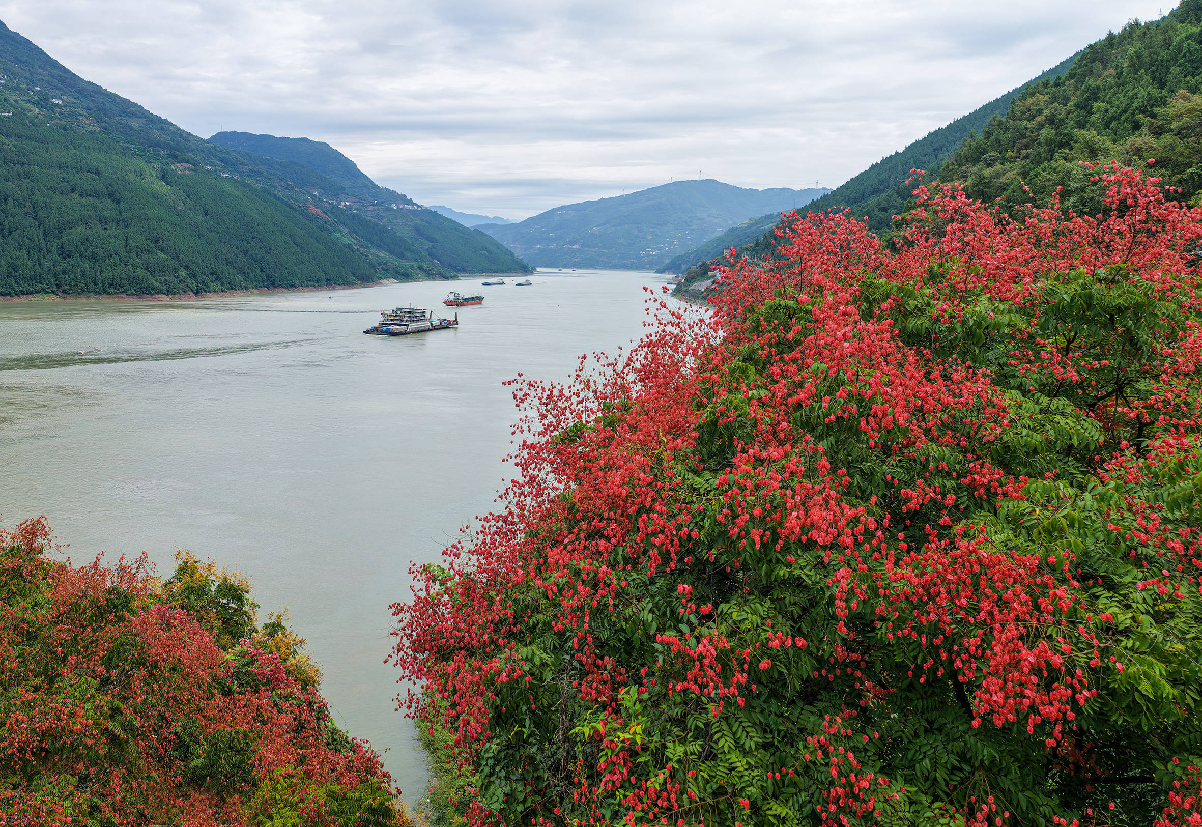 湖北日报客户端讯(通讯员吴以红、范宏霞)眼下,江城巴东,秋意正浓,栾树以其独有的绚烂,为这座江畔之城披上了一袭华丽的秋装。沿江而立的栾树高大挺拔长盈策略,枝头挂满了繁星般的蒴果,或粉或红,或黄或橙,如同调色盘上的斑斓色彩,与江面的碧波船只、远山的苍翠,构成了一幅动人心魄的秋日画卷。